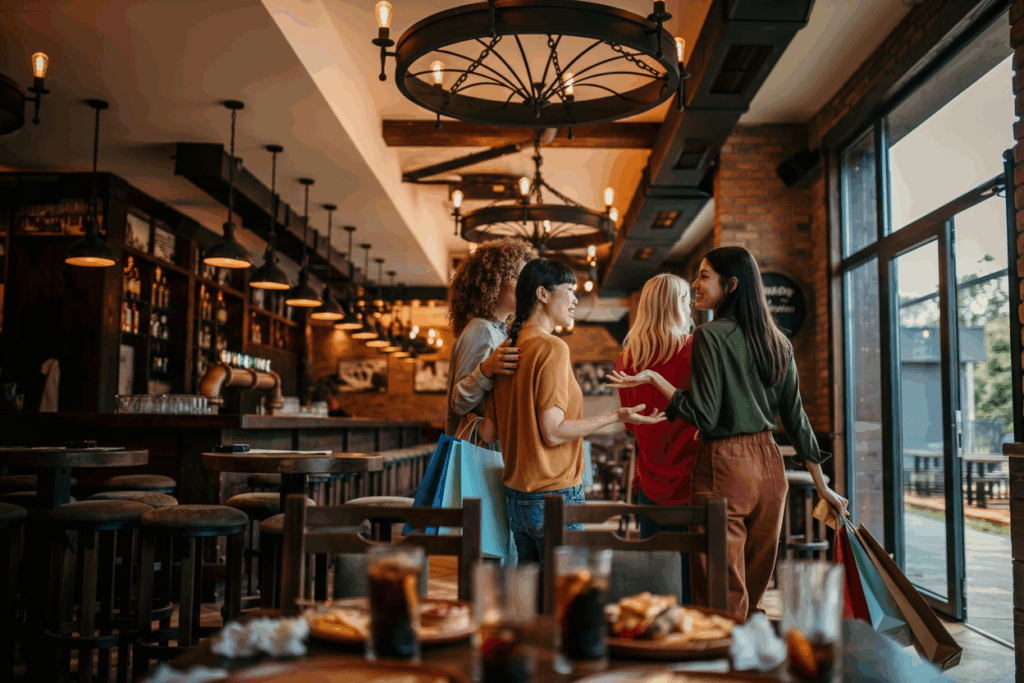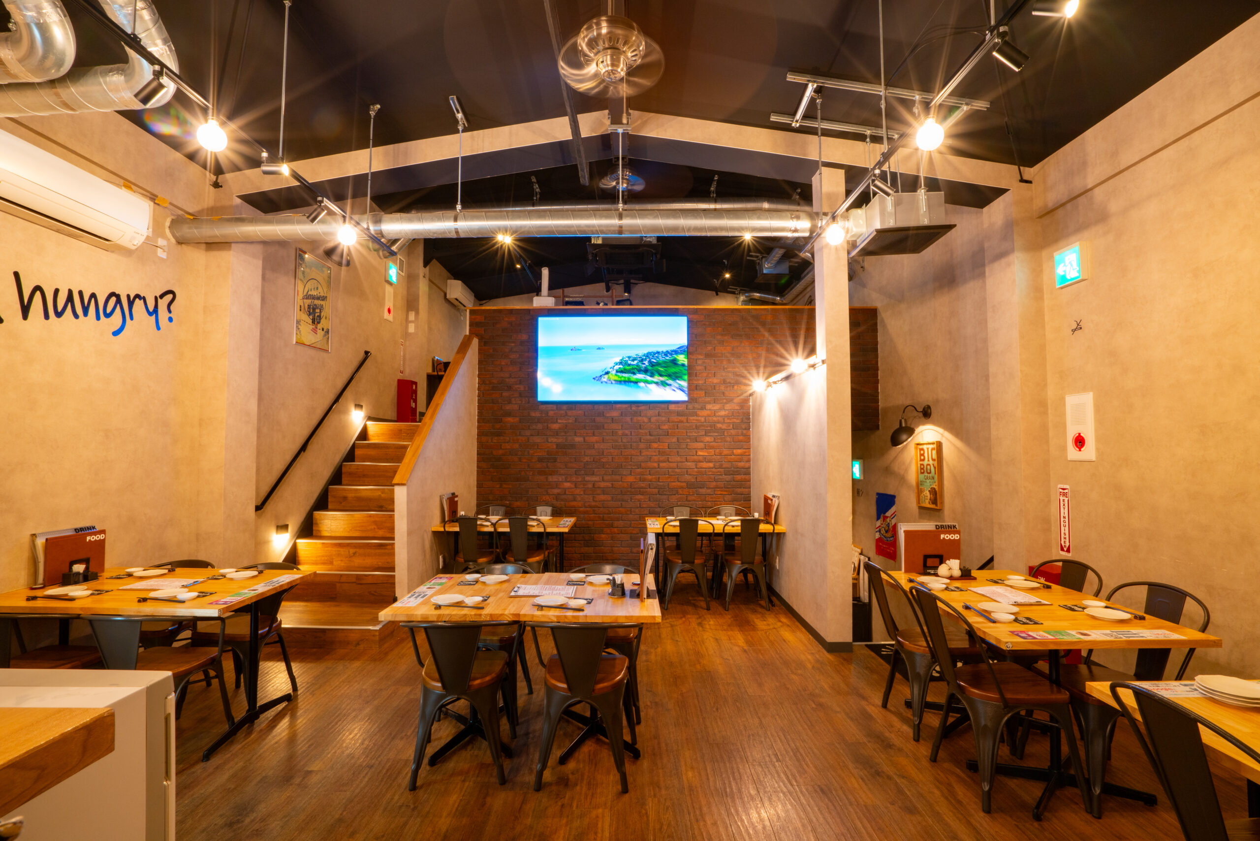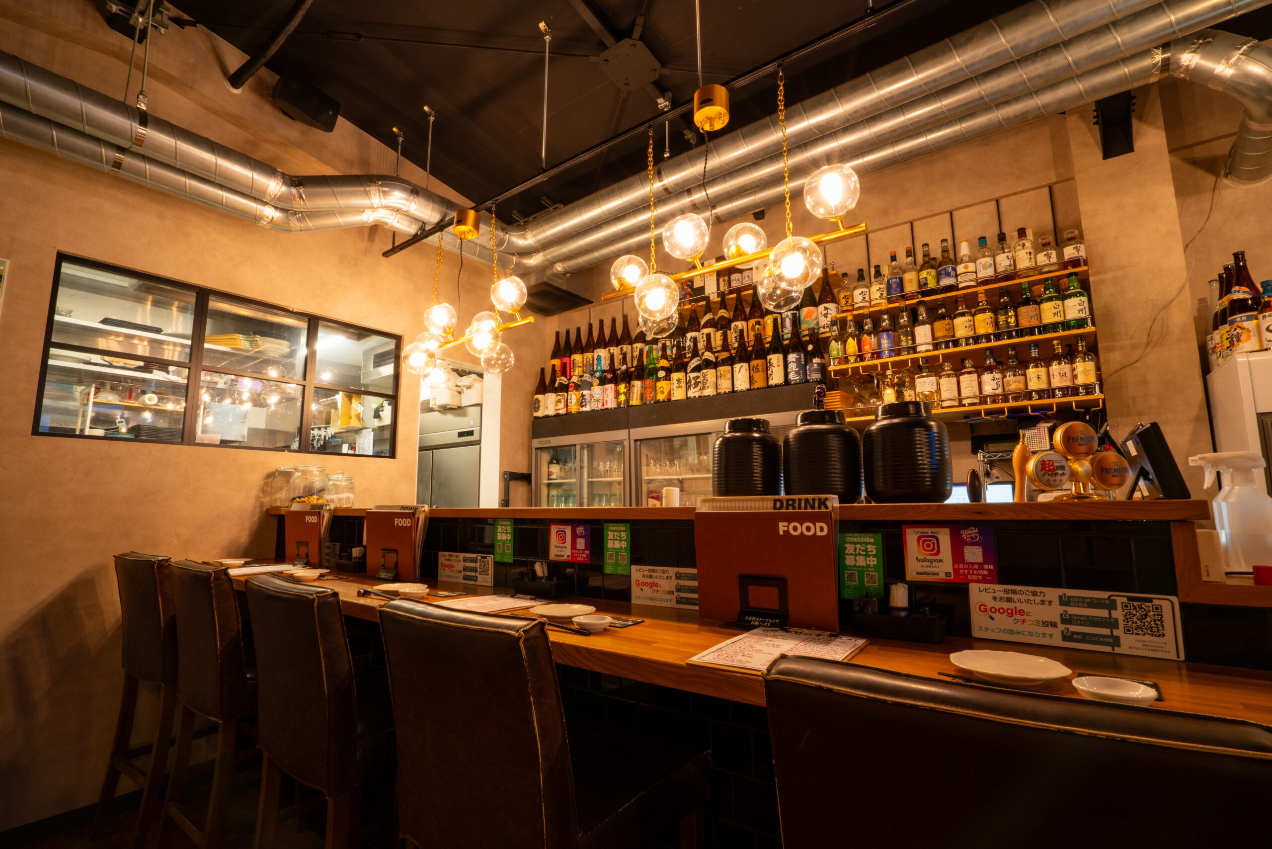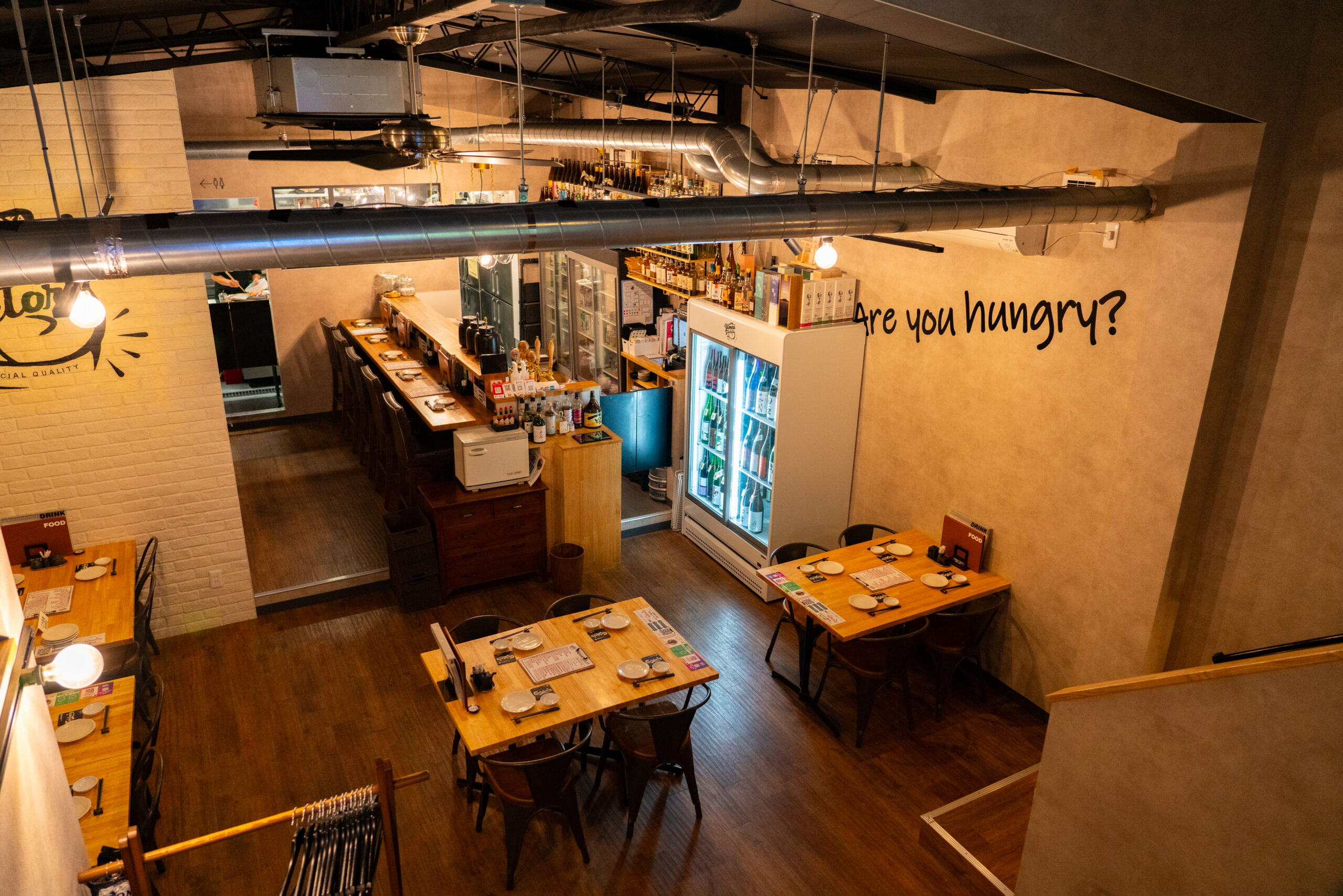 店内はニューヨーク・ブルックリンの街並みを眺めながら洗練されたデザインが魅力。木の温もりとモダンなインテリアが融合した空間です。